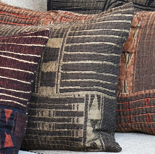 African Jacquard Metallic Bogolan Cushion - Gold & Black