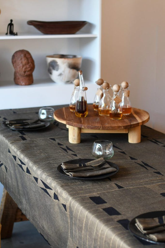 African Jacquard Metallic Bogolan Tablecloth - Gold & Black
